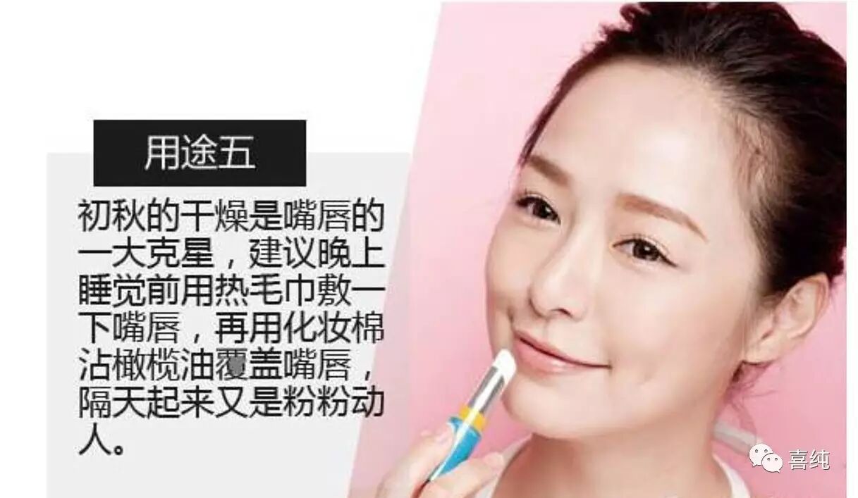 初秋的干燥是嘴唇的一大克星,建议晚上睡觉前用热毛巾敷一下嘴唇,再用化妆棉沾橄榄油覆盖嘴唇,隔天起来又是粉粉动人。尤其对每天都要涂口红的MM来说就更需要这样来保养嘴唇了,效果也是扛扛的,绝对不比润唇膏差哦!